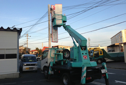 工事現場の看板や、コンビニエンスストアの看板、選挙の講演看板、店舗看板など、様々な看板のデザインの制作から設置工事を行なっています。