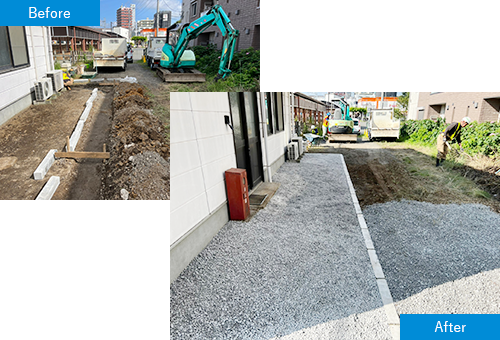 お庭の伐採や雑草が生えてこない様に砂利敷きなどの対応も可能です。